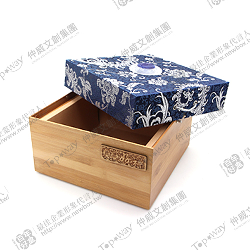 以青花紋做盒蓋設計,盒子側面有精細浮雕。