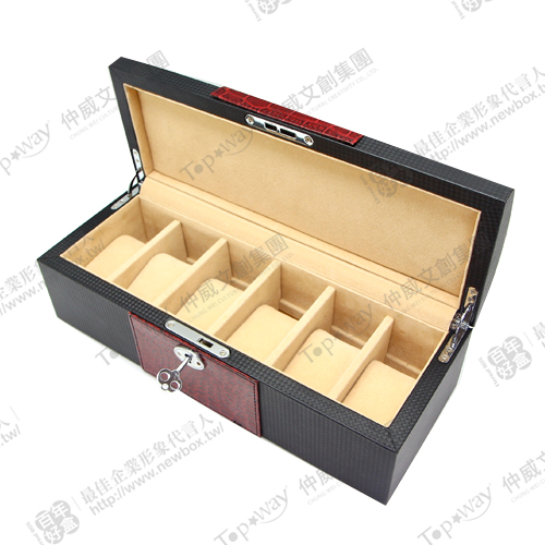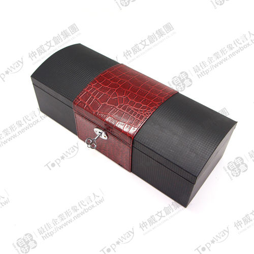 採用鱷魚紋皮革與菱格紋黑皮革搭配,內部以六等分分隔設計, 在開關上則是特別用鑰匙開鎖,非常有神祕、貴重感, 非常適合用來收非常適合用來收藏精品小物。