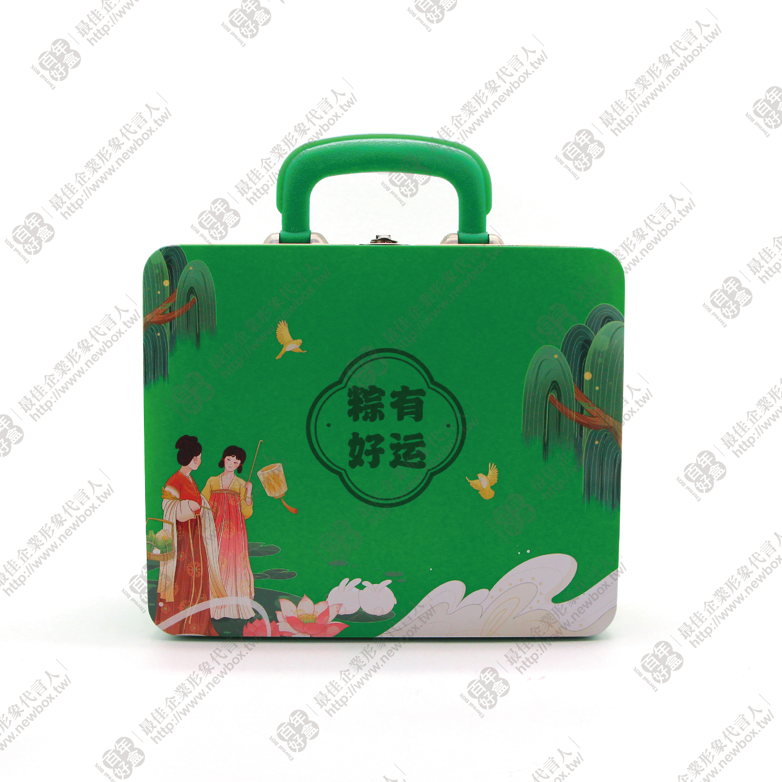 以綠色為主色,封面以中式圖樣呈現,配有精緻提把方便手提,既實用又具美感。