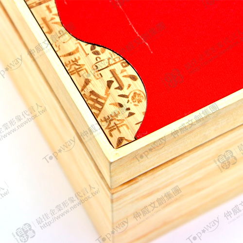 盒面以簍空設計字體呈現,木質面也有烙印多種中文字型的設計, 是一款大玩中文藝術的木盒設計