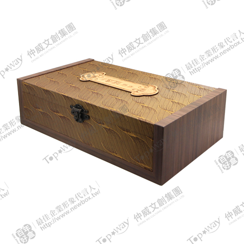 盒面上的小木牌和獨特盒鎖設計,讓木盒在傳統中多了一份東方色彩
