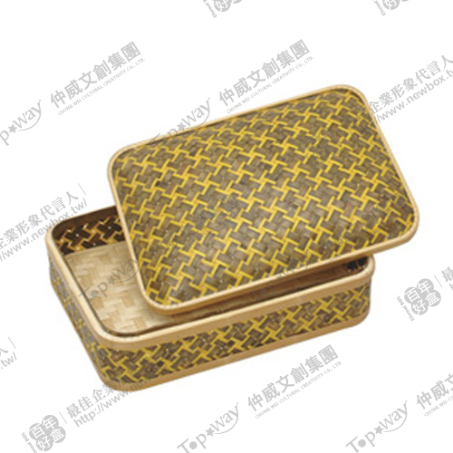 以原色竹條與亮黃細竹條編織成色彩分明的雙色竹盒