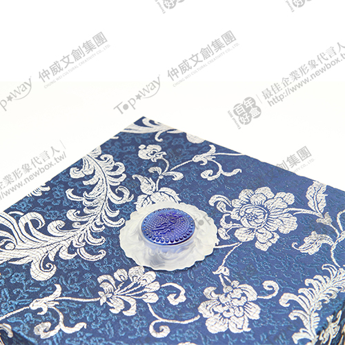 以青花紋做盒蓋設計,盒子側面有精細浮雕。