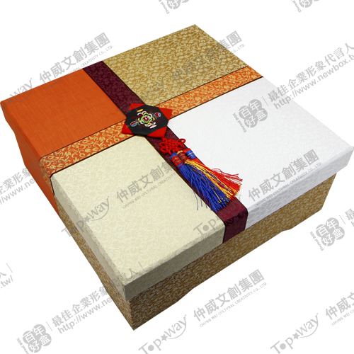 盒面以十字切割設計,中央以三色流蘇裝飾