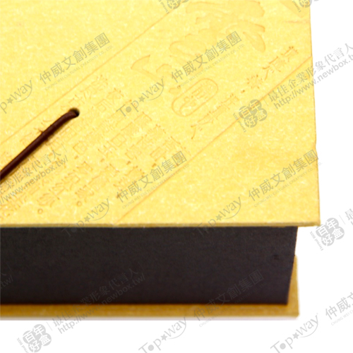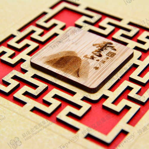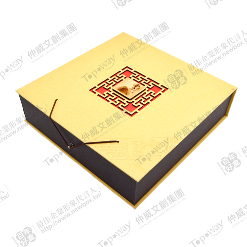 除了盒面壓紋設計,中央也有木板裝飾和簍空窗花,是媒材與造型皆多元的款式