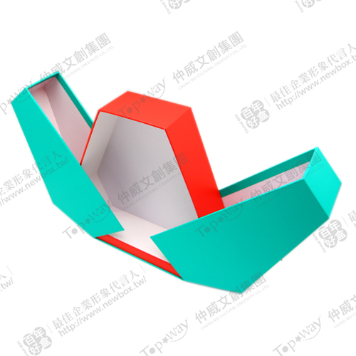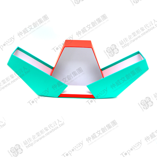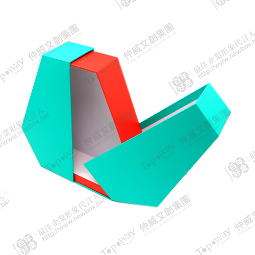 盒形設計兩側皆可打開,色彩對比搶眼的梯形盒