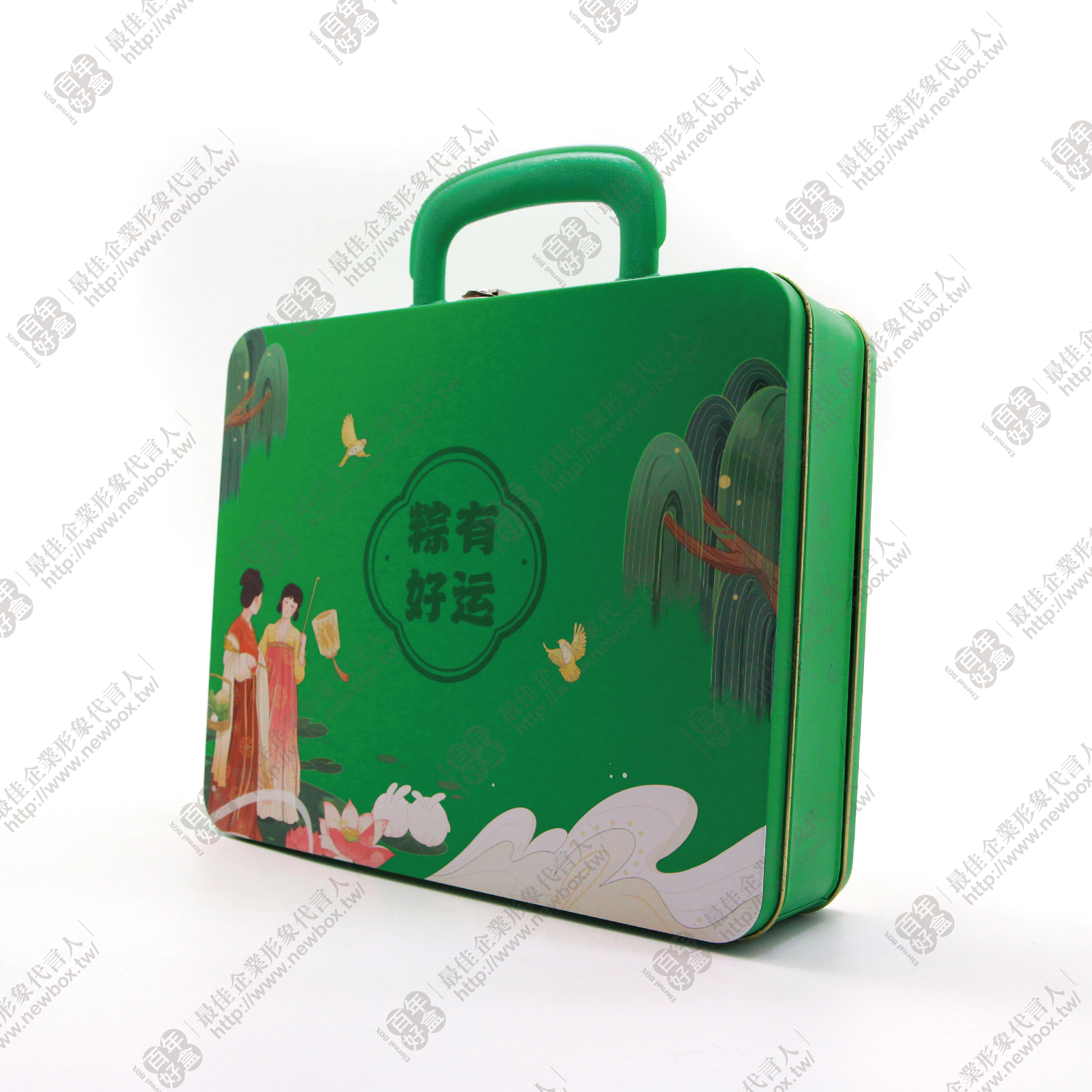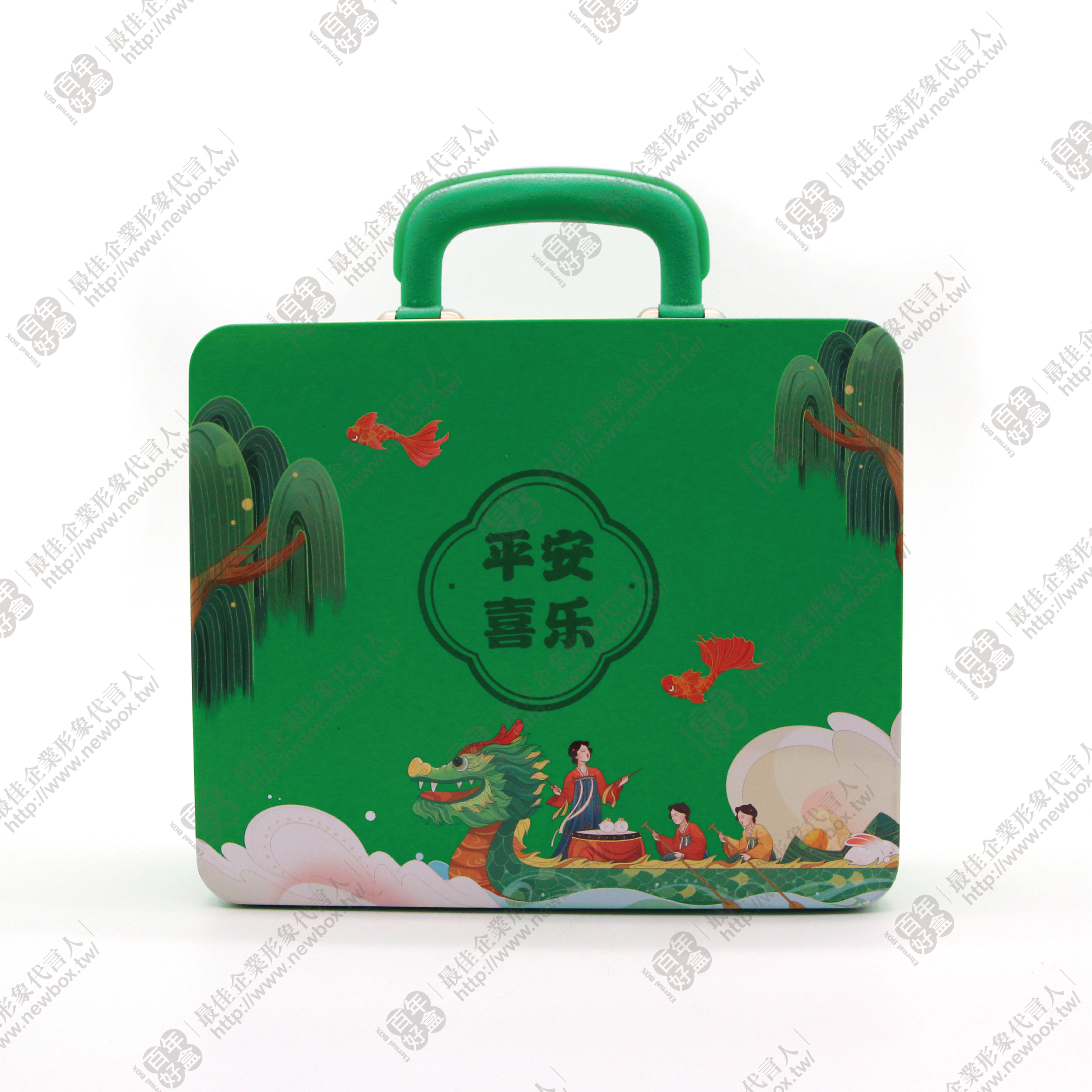 以綠色為主色,封面以中式圖樣呈現,配有精緻提把方便手提,既實用又具美感。