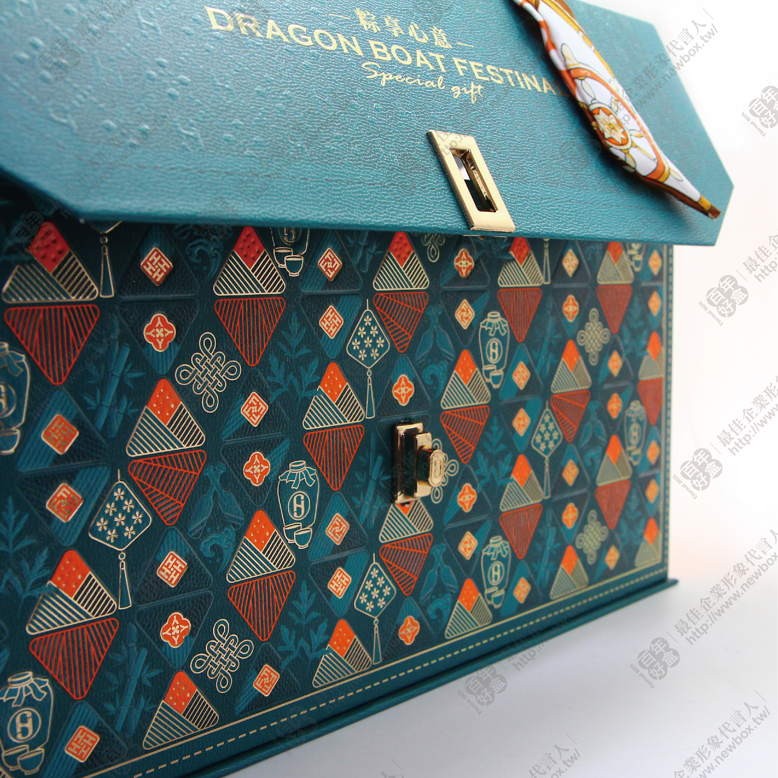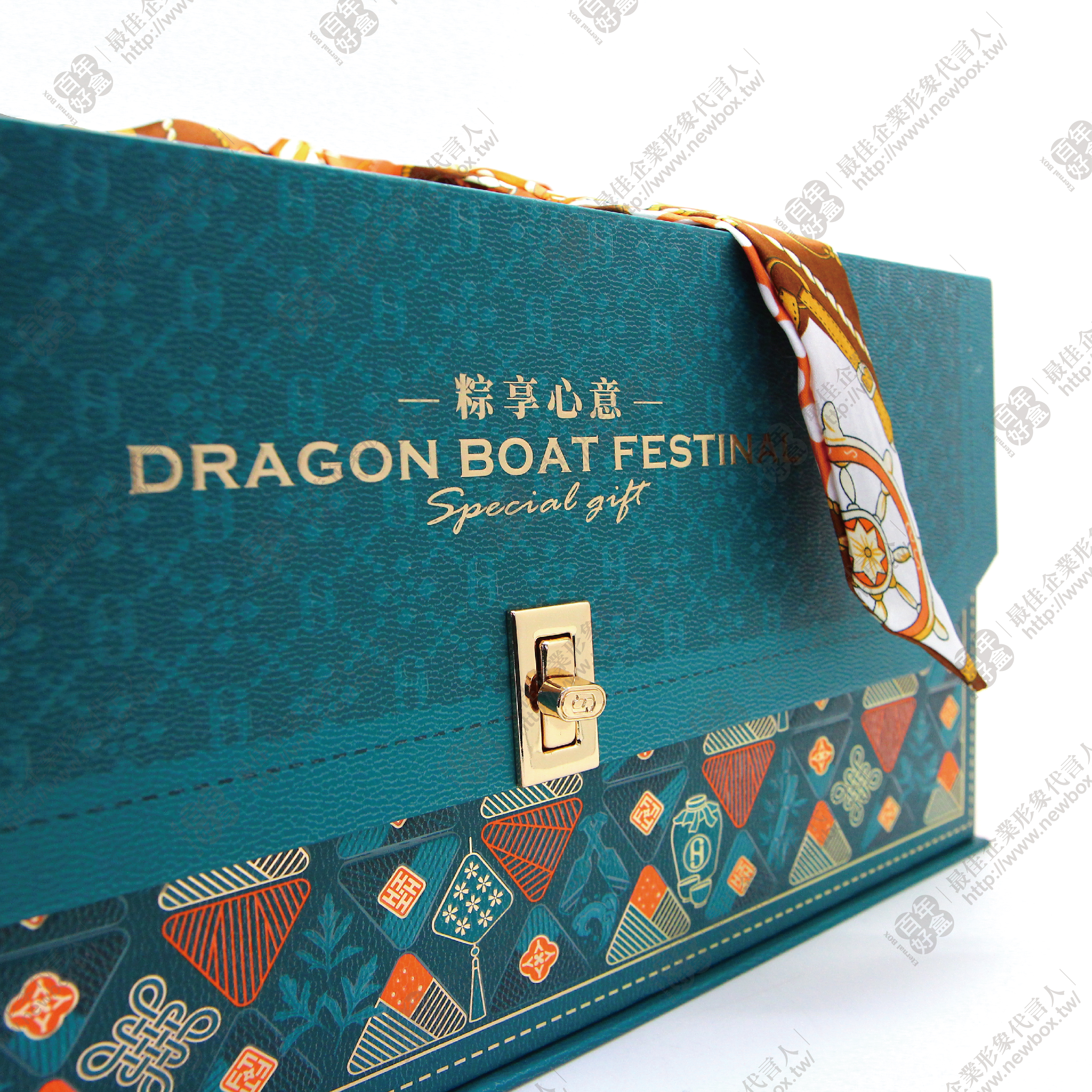 精緻的端午主題圖樣與金屬提把,絲巾點綴其中,傳遞濃濃的節日氛圍,完美呈現心意與祝福。