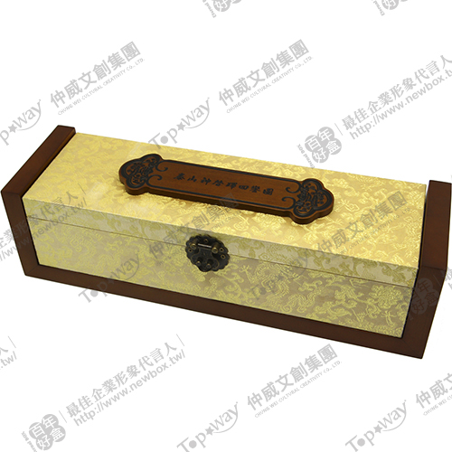 盒面上的小木牌和獨特盒鎖設計,讓木盒在傳統中多了一份東方色彩