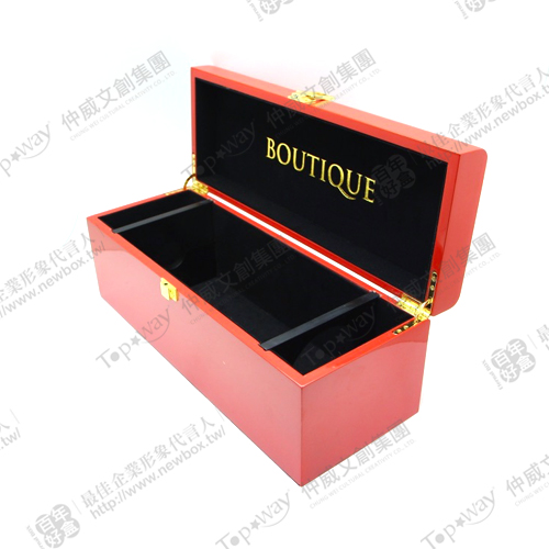 時尚亮紅印上簡約字形,配上黑色絨布內哩,呈現高檔質感