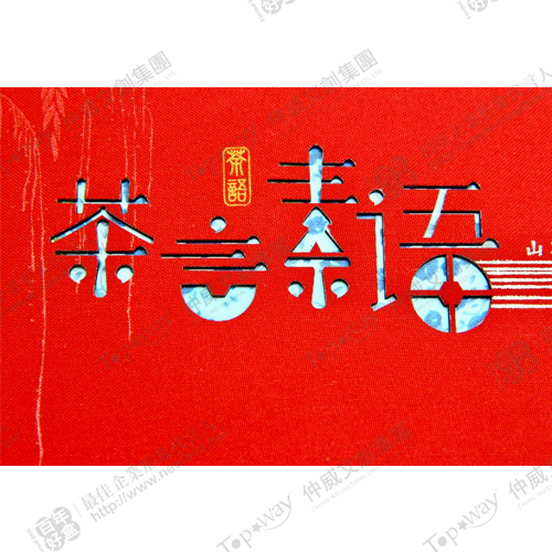 盒面以簍空設計字體呈現,木質面也有烙印多種中文字型的設計, 是一款大玩中文藝術的木盒設計