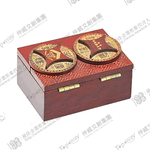 色彩使用貴氣的帝王紅,盒面以特殊銅錢浮雕裝飾,傳統中不乏創意